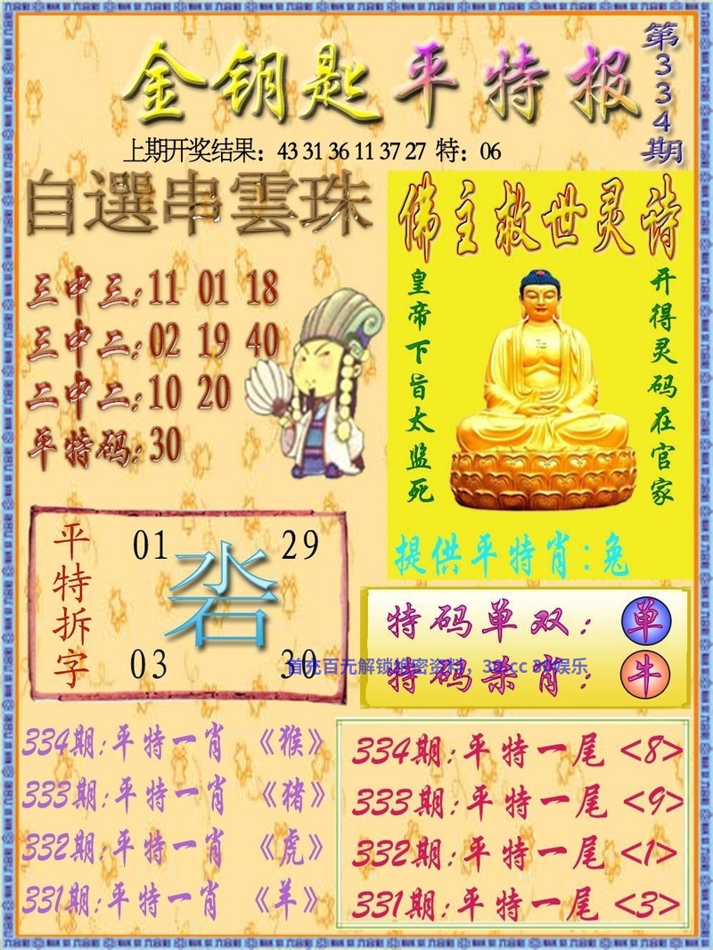 334期:伏羲杀肖【马牛兔】开:猴46准